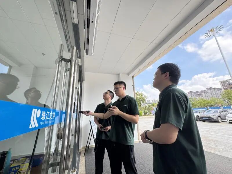 “我们企业作为十五运会赛场防蚊工作的参与者之一,深感使命光荣、责任重大。绿岛风风幕机是企业王牌产品,还获得了广东省制造业单项冠军的殊荣。我们这次安装的风幕机,实现防蚊的核心原理是气流物理拦截。蚊虫飞行速度通常在0.24~1.5米/秒之间,平均飞行速度约为0.81米/秒,最快可达1.56米/秒。我们技术团队严格针对蚊虫的飞行速度,对体育场馆不同高度的出入门进行了产品选型匹配,且已经通过专业实验室模拟测试验证了效果可靠性。”广东绿岛风空气系统股份有限公司产品工程师黄永创介绍道。他们通过双重验证机制更是为防蚊效果上了“双保险”,防蚊效果一致性达100%,无论在何种条件下都能稳定发挥防蚊作用。