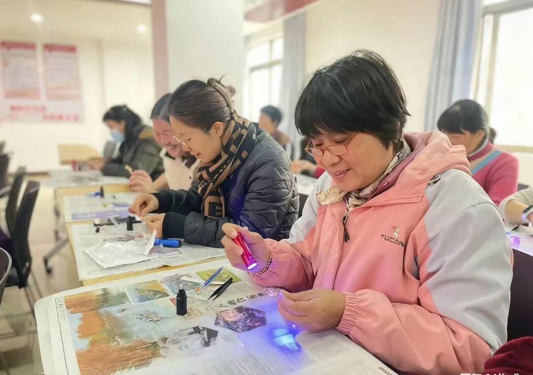 “陈姐,快来!今天的手工课教非遗胸针制作,材料都给你留好了!”楼长杨阿姨熟稔地招呼着老邻居,大家围坐在一起,穿线、串珠、固定纹样,指尖翻飞间,一个个精巧别致的非遗胸针逐渐成型,呈现出一派热闹温馨的景象。