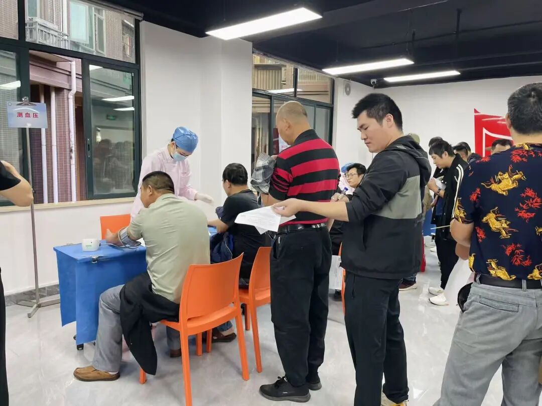 “平时跑车早出晚归,连喝水的时间都紧张,去医院体检要排队、耗时间,一直没顾上。现在党群服务中心把体检点搬到‘家门口’,上班前、跑单间隙就能来,太方便了!”刚做完视力检测的李师傅对医护人员连连称赞,对中心的贴心安排赞不绝口。针对滴滴司机长期久坐、眼疲劳、作息不规律的职业痛点,新就业群体党群服务中心联合广东省工人医院,在中心一楼服务大厅精心布置了体检专区——视力检测台、血压测量仪、血常规采样点依次排开,医护人员身着白大褂耐心接诊,社区志愿者穿梭其间引导分流。