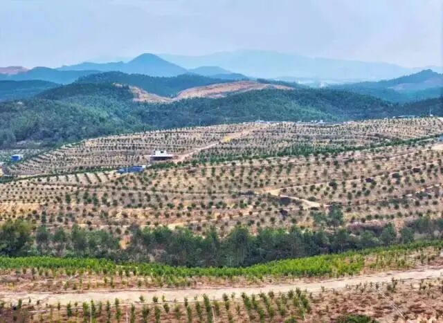 在鹤城镇坑尾村起伏连片的山丘上,株株沉香木苗迎风招展。梁晓辉 摄