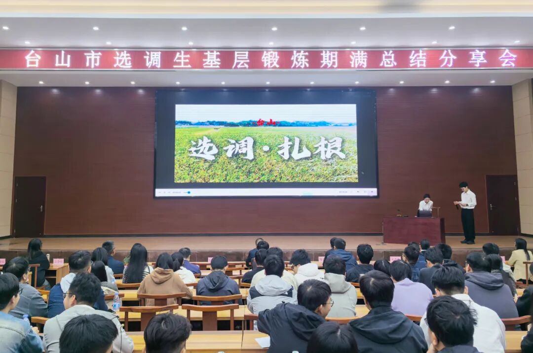 近日,台山市召开2023年选调生基层锻炼期满总结分享会,组织选调生们相互交流一线实践经验与成长收获,集中展示驻村工作的丰硕成果。2023至2025年录用的全体选调生参会交流。