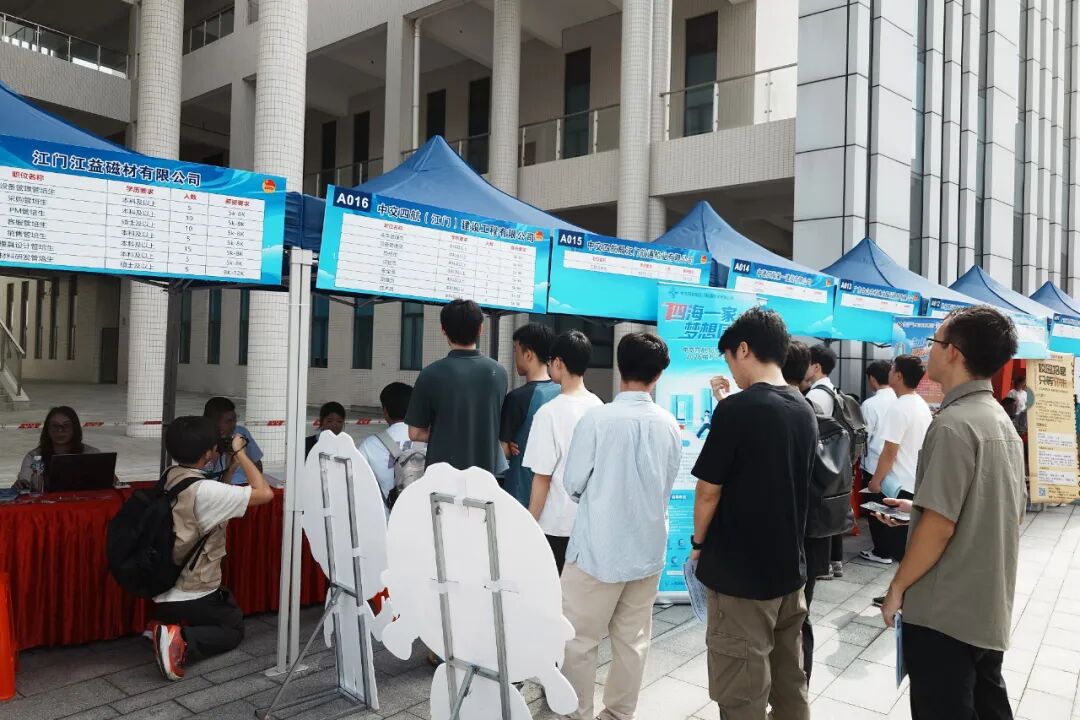 在国有企业的招聘区域,来自电子信息工程学院的毕业生林俊浩刚刚投递完简历:“我提前筛选了江门市高新技术工业园集团等几家本地大型企业,他们的平台和发展前景都很符合我的期待。”作为信息安全专业的学生,他的求职意向并不局限在本专业领域:“只要岗位合适,我都愿意尝试,重要的是找到能长期发展的平台。”
