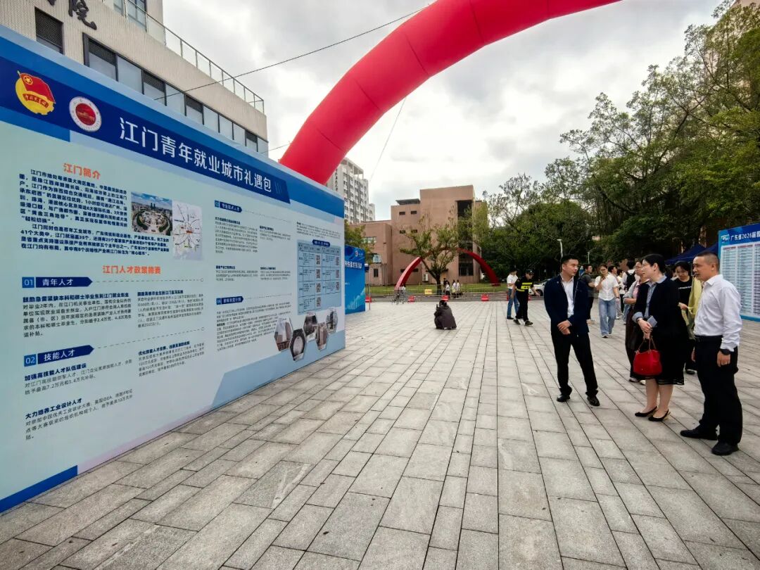 活动现场还面向学子们推出涵盖青年安居、青年驿站、青年人才补贴等就业优惠政策的“江门青年就业城市礼遇包”,同步设立“兴乡创业企业专区”,整合兴乡创业企业提供实习岗位机会并展示本土特色产品,进一步丰富学子们的求职服务体验。