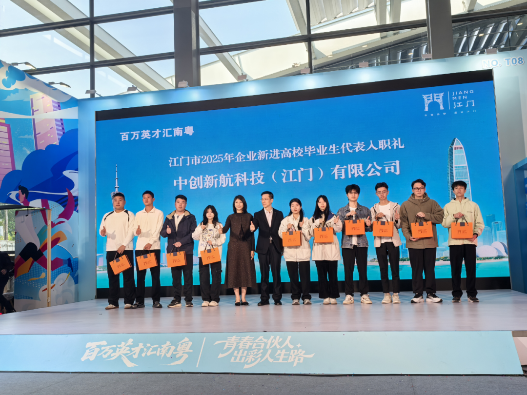 优质岗位汇聚带来的是实打实的人气。在为期2天的招聘活动中,新会区企业共收取有效简历超700份,供需双方在现场高效对接,已初步达成就业意向超100人。3位优秀学子与企业现场签约,提前锁定意向岗位,其中本硕均就读于黑龙江理工大学的朱星燃同学以其过硬的项目经历和来新工作的强烈意愿完美匹配广州华商职业学院的岗位需求,实现了人才与企业的“双向奔赴”。在活动现场,中创新航新入职的10名毕业生代表,参加了入职礼。