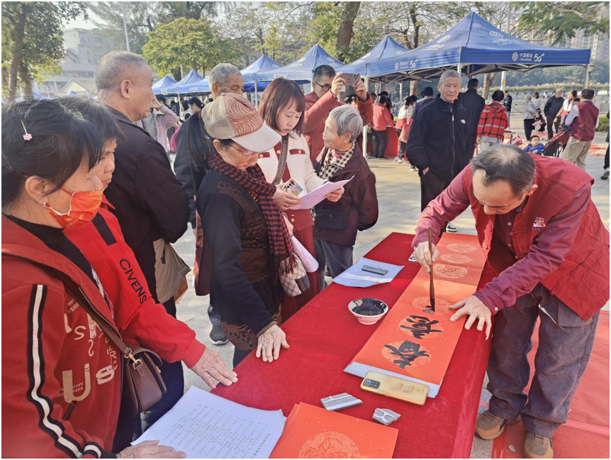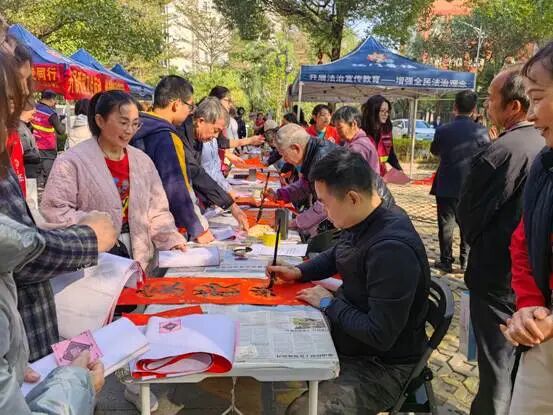 邀请书法家现场泼墨,写春联、写福字,送给街坊邻里。